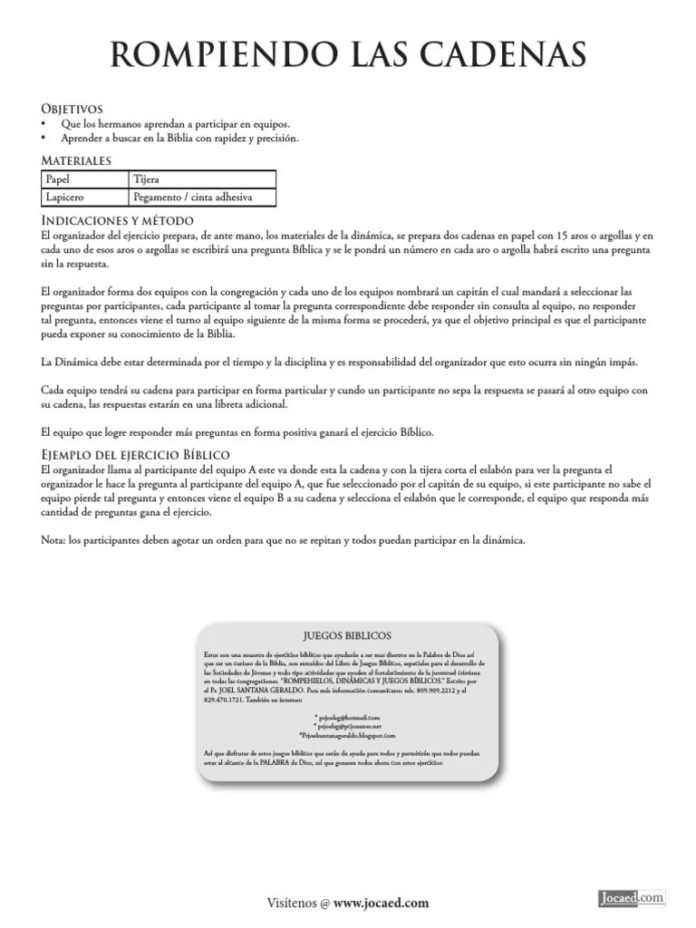 Las preguntas bíblicas están conformadas de la siguiente manera. Asociación ministerial, biblia, reavivados por su palabra 1 mes atrás. De rosofia boutique, que 161 personas siguen en pinterest. La iglesia se organiza en dos equipos y a cada equipo se le nombra un líder, el cual elegirá los participantes para la participación del ejercicio bíblico. Aqui hay algunos ejercicios biblicos para descargar:
